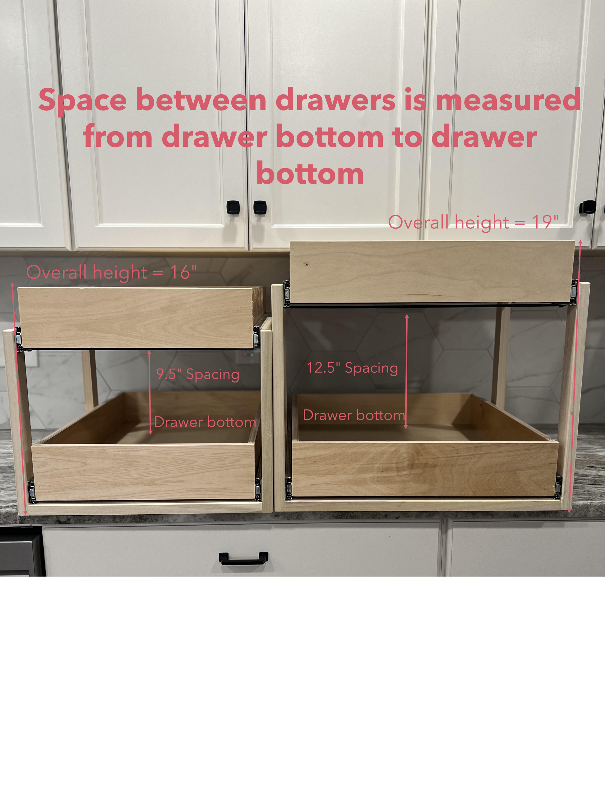 • These drawers will arrive fully assembled, ready to slide into your cabinet opening!