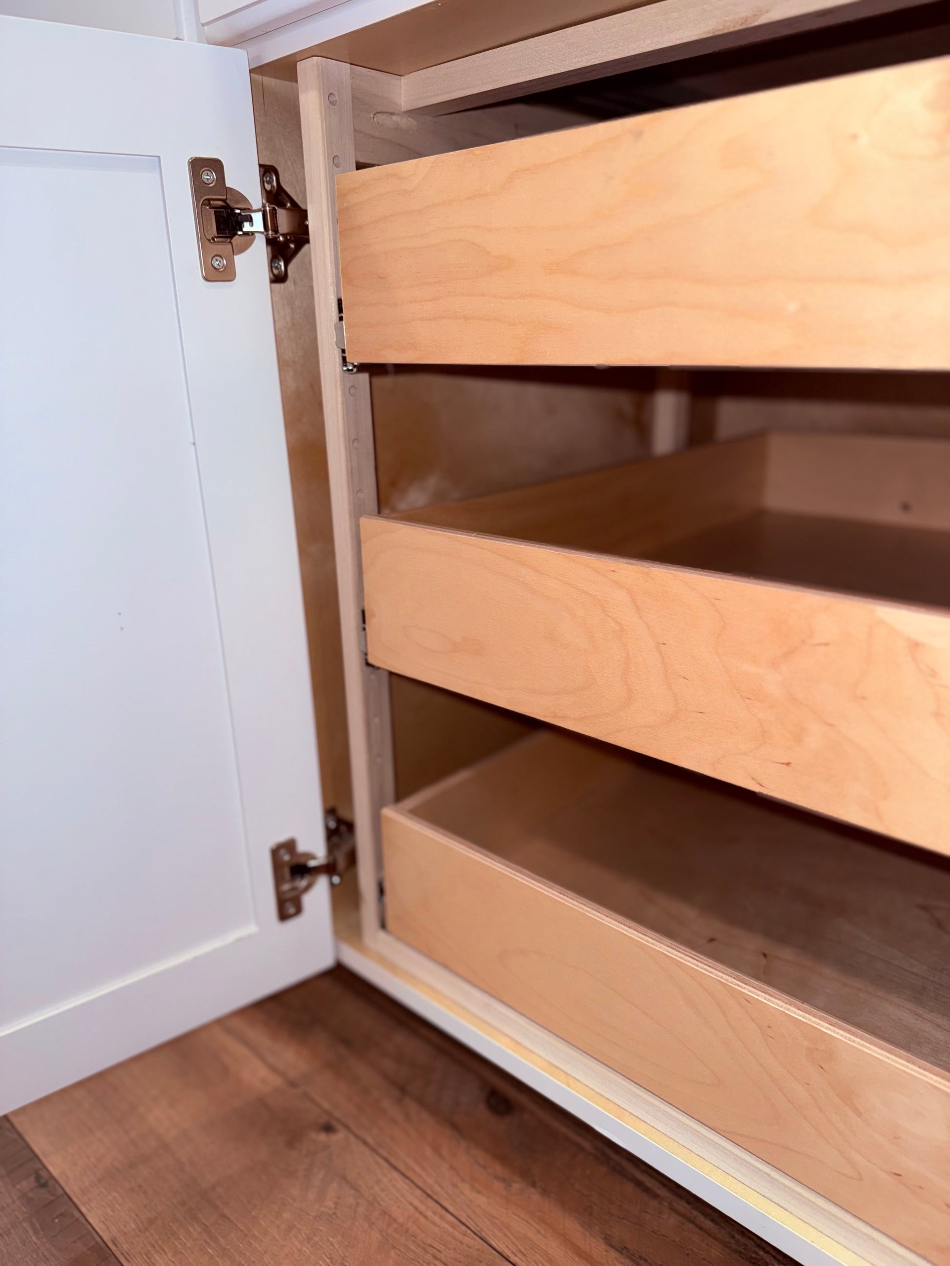 All of our drawers are handcrafted from 9 ply Baltic birch.